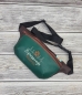 Die Tasche besteht aus einem hochwertigen grün und braunem Kunstleder.