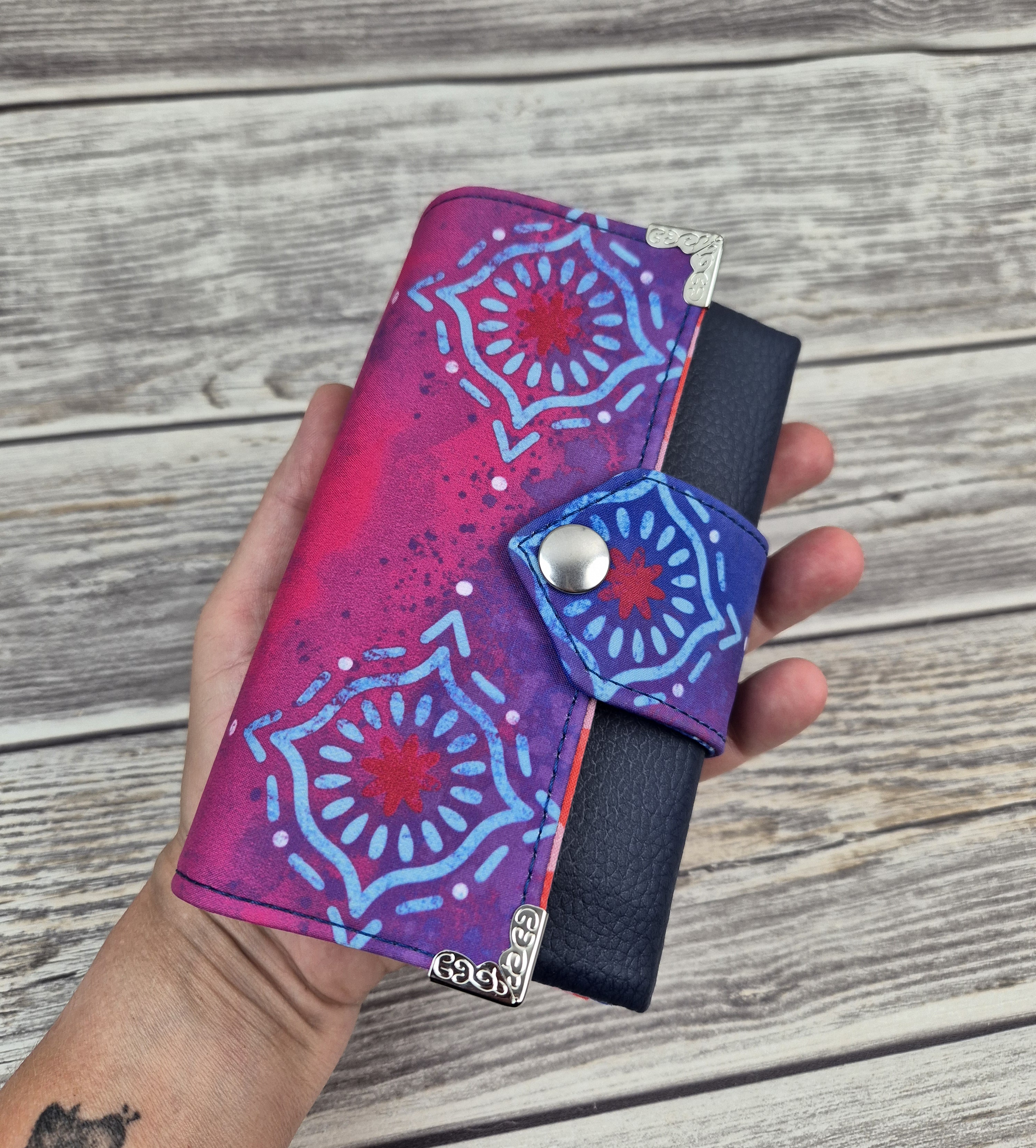 Verarbeitet wurden hier ein dunkelblaues Kunstleder und farblich passende Baumwolle - die so gut verstärkt sind, dass die Geldbörse wunderbar stabil ist.