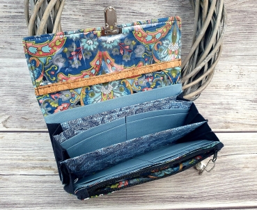 Hier gibt es genügend Platz zur Aufbewahrung von Geldscheinen, Kleingeld, Karten, Fotos und sogar für das Handy.